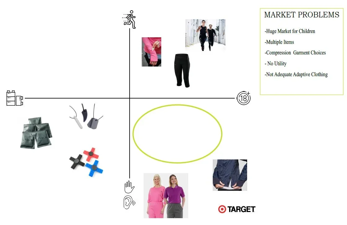 The design process began with in-person market research, which revealed a gap in everyday adaptive solutions for adults with autism, as most offerings in the market focus primarily on youth.